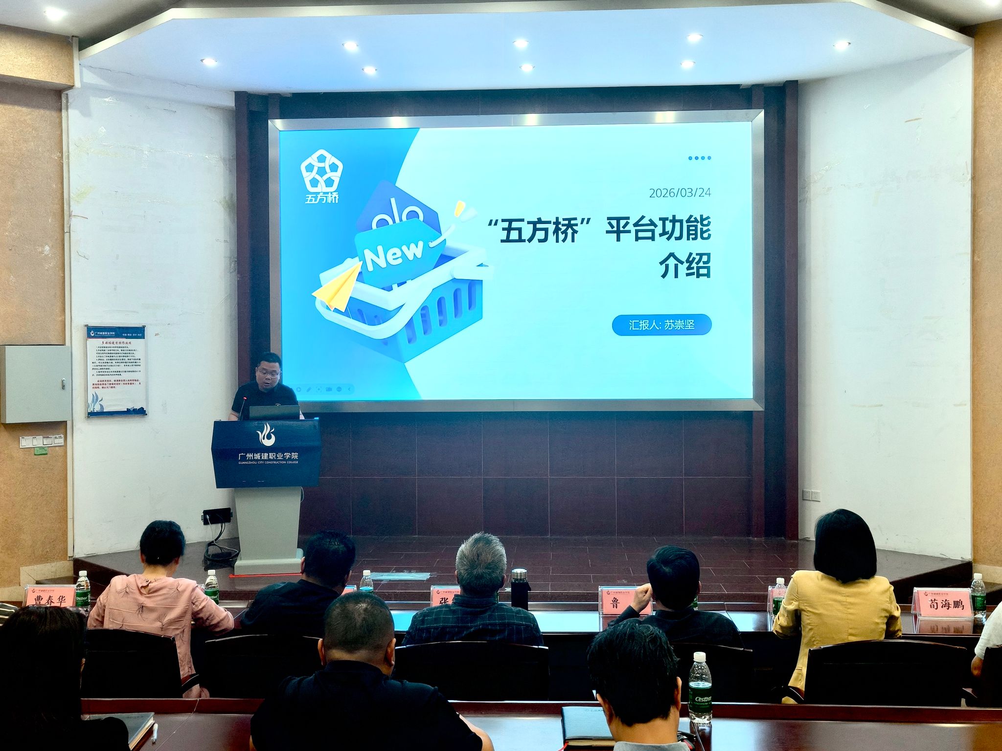 科技处(校企合作办)副处长苏崇坚详细介绍人才培养供需适配机制改革试点重点建设项目“五方桥”平台,从功能作用、操作流程等方面解读“企业适岗培训、企业短期实习、企业假期实践、企业校园招聘、学生职业发展”等模块内容。“五方桥”平台将助力学校就业服务提质升级,打造民办高职就业育人新生态。
