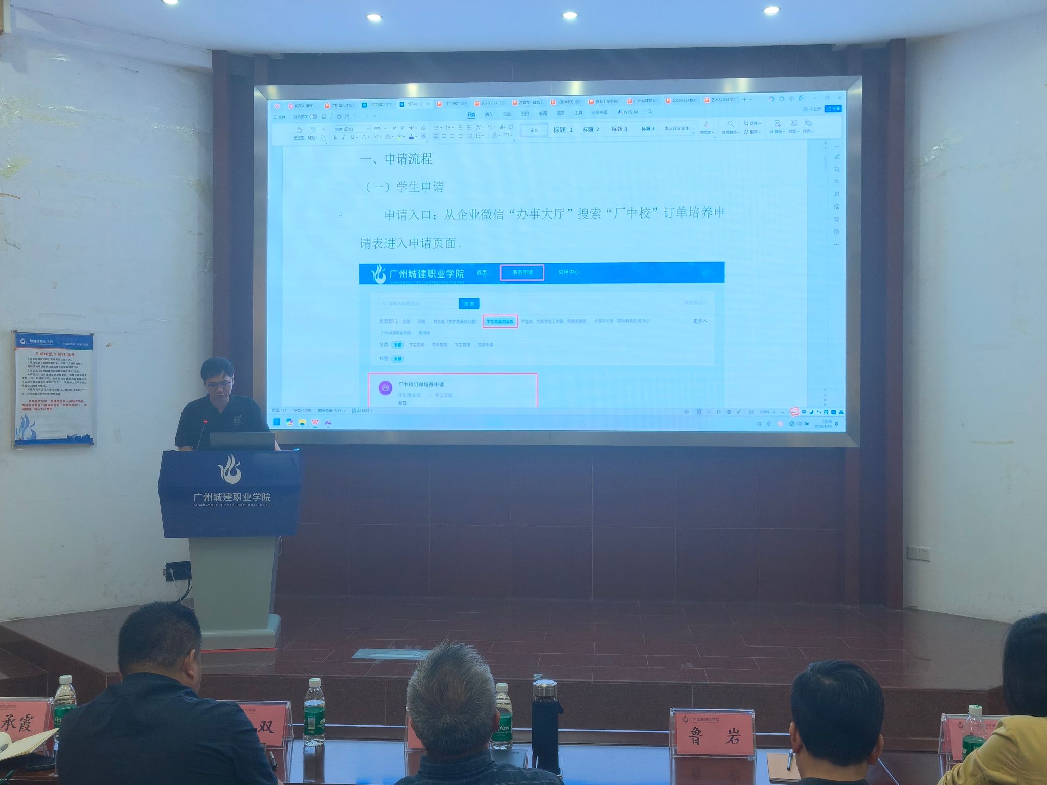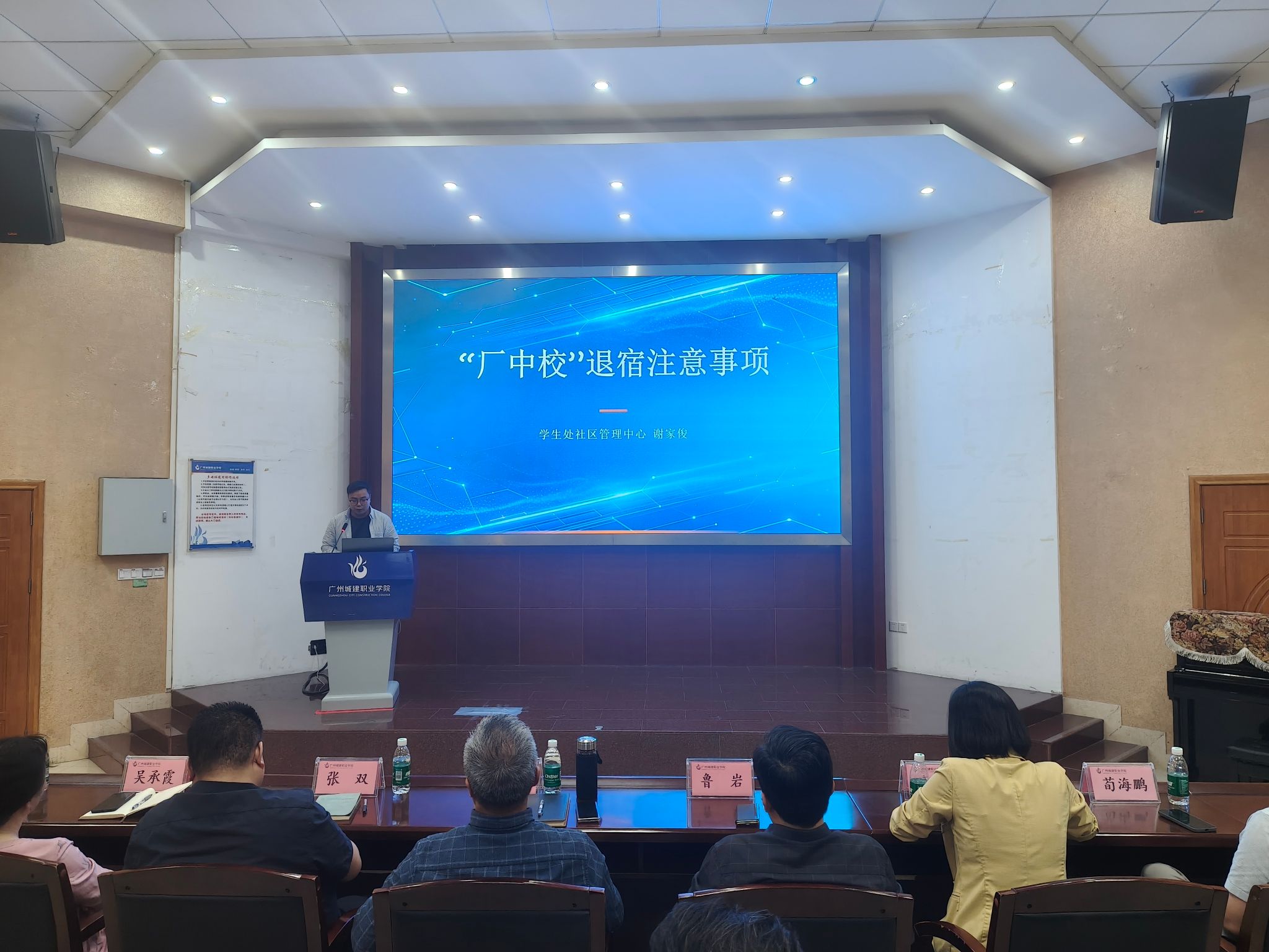 学生就业创业处韩文杰老师围绕“厂中校”订单培养申请流程、材料提交规范及审核要点进行细致讲解;社区管理中心主任谢家俊就学生住宿置换、宿舍调整搬迁等事项逐一说明。